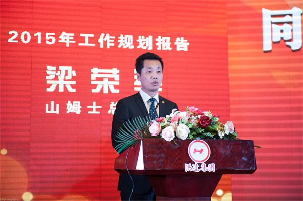 年會內(nèi)容精彩紛呈,共由三大部分組成。首先,由企業(yè)文化評比決賽方隊進(jìn)行匯報演出。參加決賽的六只方隊早已整裝待發(fā),舞臺上的他們,或深情朗誦,或激情舞蹈,每一個動作、每一個笑容,都彰顯出了公司昂揚(yáng)向上的精神風(fēng)貌,博得了臺下觀眾的陣陣掌聲。企業(yè)文化匯報演出結(jié)束后,山姆士超市總經(jīng)理梁榮軍先生、必高集團(tuán)總經(jīng)理王原林先生分別作了年度工作規(guī)劃報告,總結(jié)了各公司過去一年所取得的成績,同時也提出了存在的問題及其解決方案,并對2015年的各項工作作了明確規(guī)劃和部署。