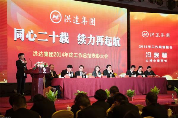 2015年1月30日下午2:00,洪達(dá)集團(tuán)“同心二十載,續(xù)力再起航”2014年終工作總結(jié)表彰大會于太原市晉商國際大酒店會議廳隆重拉開帷幕。出席本次大會的有洪達(dá)集團(tuán)董事長馮常洪先生、洪達(dá)集團(tuán)人力資源總經(jīng)理景紅珍女士、洪達(dá)集團(tuán)行政總經(jīng)理馮煥琴女士、洪達(dá)集團(tuán)財務(wù)總監(jiān)趙建梅女士、洪達(dá)集團(tuán)工程副總牛忠保先生、山姆士超市總經(jīng)理梁榮軍先生、必高集團(tuán)總經(jīng)理王原林先生、必高遠(yuǎn)峰股份董事長韓國裕先生及精誠必高董事長劉戌國先生。此外,必高集團(tuán)各總經(jīng)理、山姆士超市各經(jīng)理及店長、洪達(dá)集團(tuán)企業(yè)文化評比各方隊代表近300人參加了本次會議。