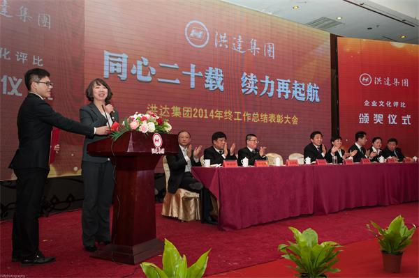 會議第三項為年終評比表彰活動,對過去一年來貢獻(xiàn)突出的團(tuán)隊和個人進(jìn)行了表彰,同時揭曉了本次企業(yè)文化評比的金銀銅獎獲獎方隊,以此激勵全體員工奮發(fā)進(jìn)取,共同推進(jìn)企業(yè)文化建設(shè)。洪達(dá)集團(tuán)相關(guān)領(lǐng)導(dǎo)分別為獲獎團(tuán)隊和個人開獎并頒發(fā)獎杯、合影留念,希望全體員工向優(yōu)秀代表學(xué)習(xí),愛崗敬業(yè),為公司的發(fā)展做出自己的貢獻(xiàn)。